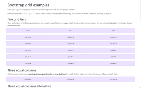 Multiple examples of grid layouts with all four tiers, nesting, and more.